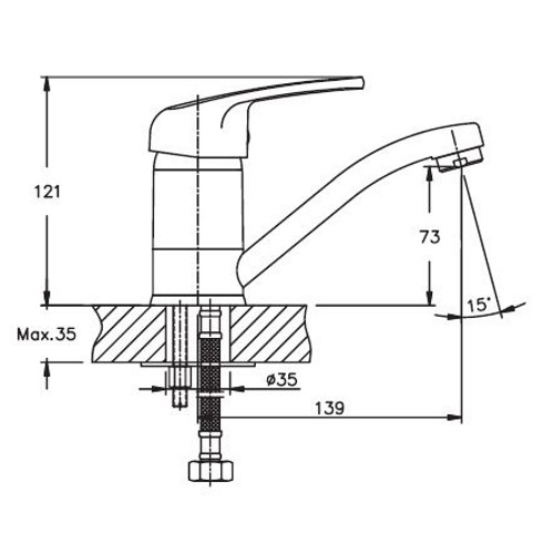 • Испанский картридж (40 мм) • Аэратор Neoperl • Гибкая подводка из нержавеющей стали (450 мм, 1/2”) • Материал корпуса – латунь