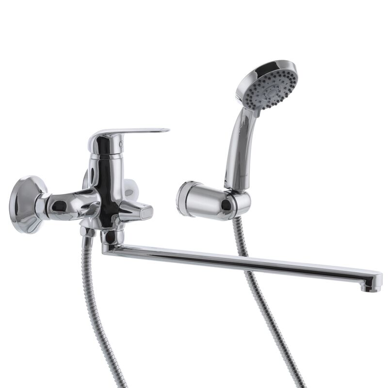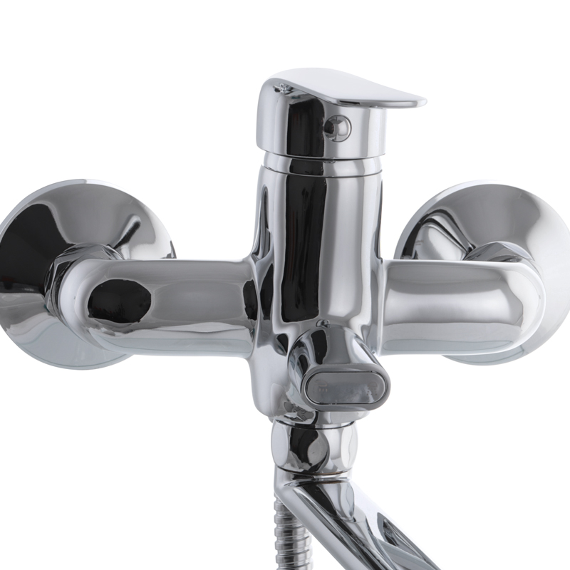Одноручковый смеситель для ванны Haiba DARIO 006 (HB0858) закрепляется на вмонтированных в стену трубах с помощью эксцентриков, что закрываются декоративными чашками в процессе монтажа. Сам смеситель изготовлен из латуни категории А. Поверхность корпуса хромирована и отполирована до зеркального блеска с легким стальным оттенком.