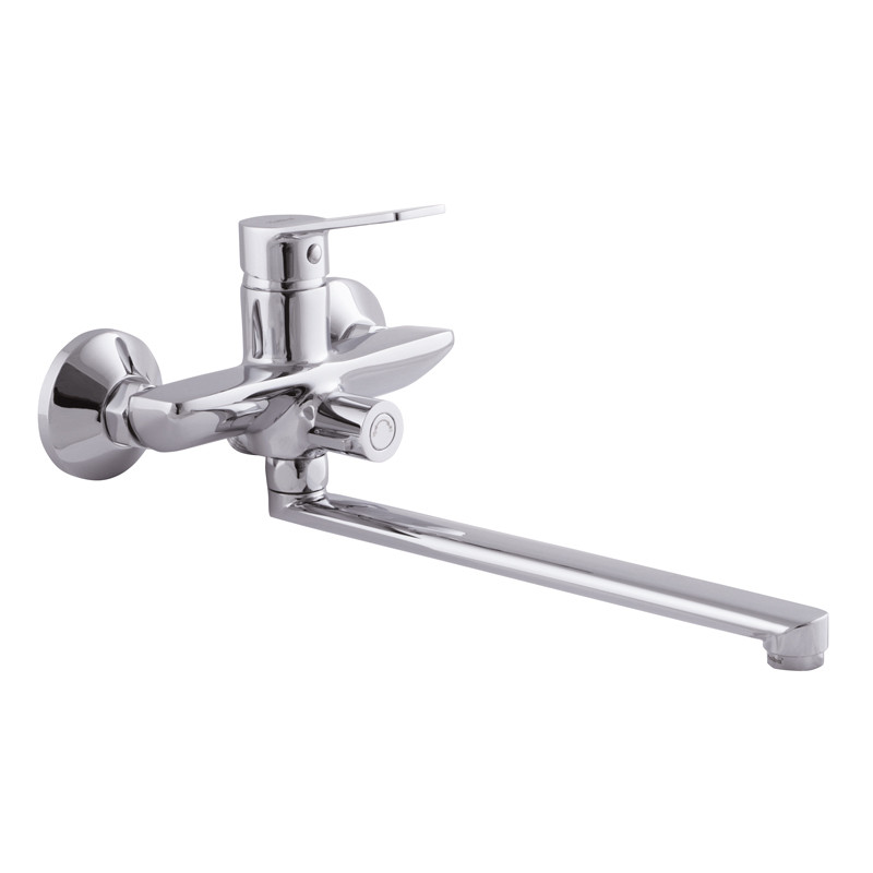 Одноручковый смеситель для ванны Haiba DIANA 006 (HB1016) закрепляется с помощью эксцентриков на трубах водоснабжения вмонтированных в стену. Его особенностью является сочетание евро переключателя, 35 мм испанского картриджа и 322 мм поворотного излива со встроенным аэратором, что обеспечивает экономичность, долговечность и удобство использования. Важно отметить и комплектацию, которая включает 5 режимную лейку, 1,5 метровый шланг, уплотнители, эксцентрики с декоративными чашками, держатель для лейки и аэратор. Изготовлен смеситель из латуни, хромирован и отполирован до стального блеска.